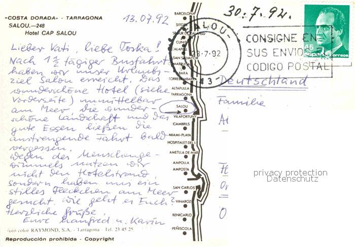 old postcard Tarragona Hotel Cap Salou postalisch gelaufen Erhaltung siehe scans [LiesaD40]