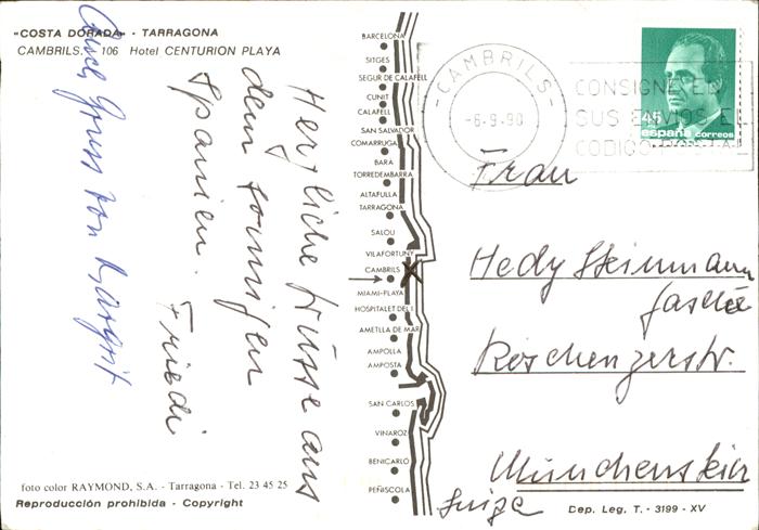 old postcard Tarragona Hotel Centurion Playa vista aerea postalisch gelaufen Erhaltung siehe scans