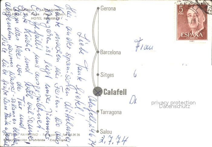 old postcard Tarragona Hotel Miramar postalisch gelaufen Erhaltung siehe scans