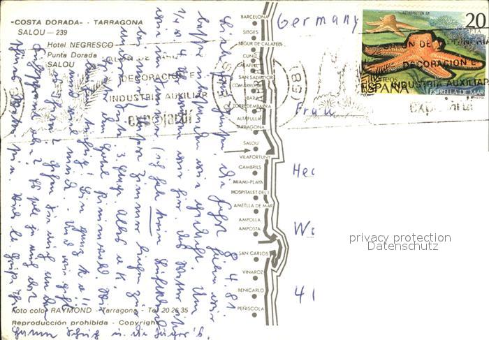 old postcard Tarragona Hotel Negresco postalisch gelaufen Erhaltung siehe scans