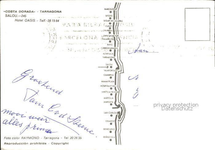 old postcard Tarragona Hotel Oasis postalisch gelaufen Erhaltung siehe scans