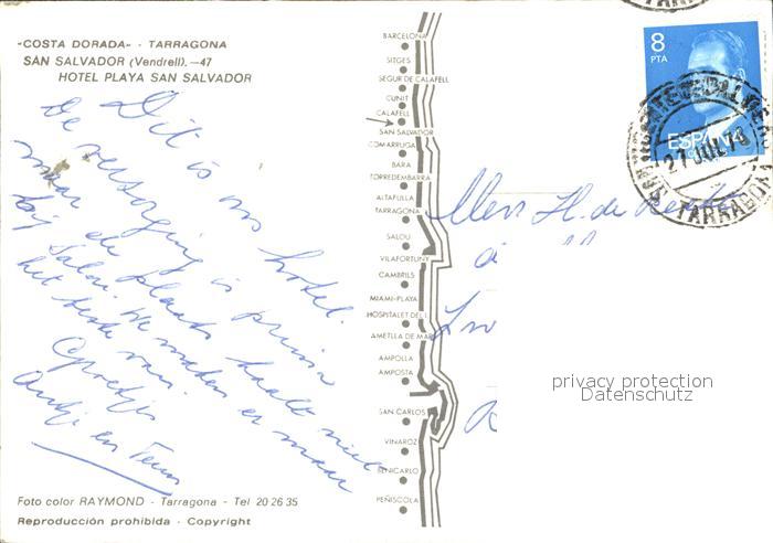 old postcard Tarragona Hotel Playa san Salvador postalisch gelaufen Erhaltung siehe scans
