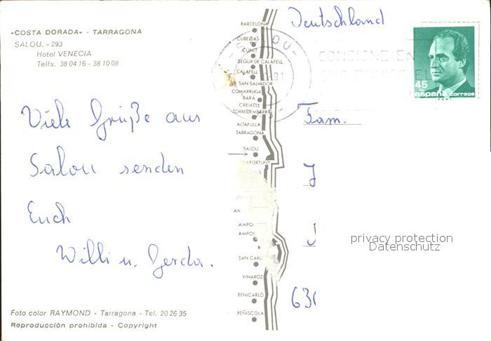 old postcard Tarragona Hotel Venecia Bar Swimmingpool Panorama postalisch gelaufen Erhaltung siehe scans