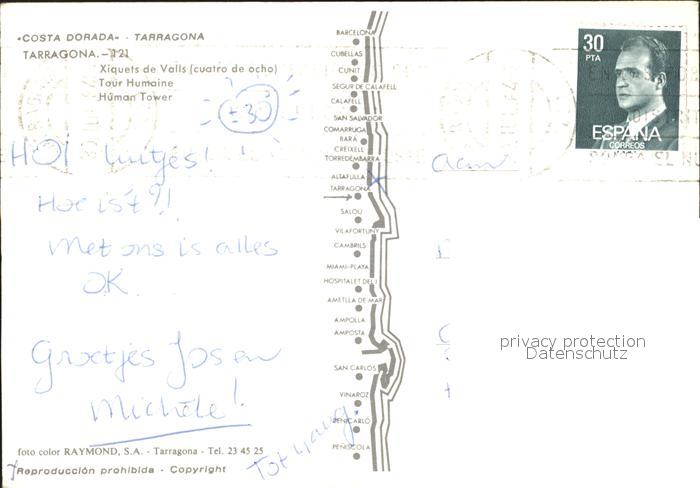 old postcard Tarragona Human tower postalisch gelaufen Erhaltung siehe scans
