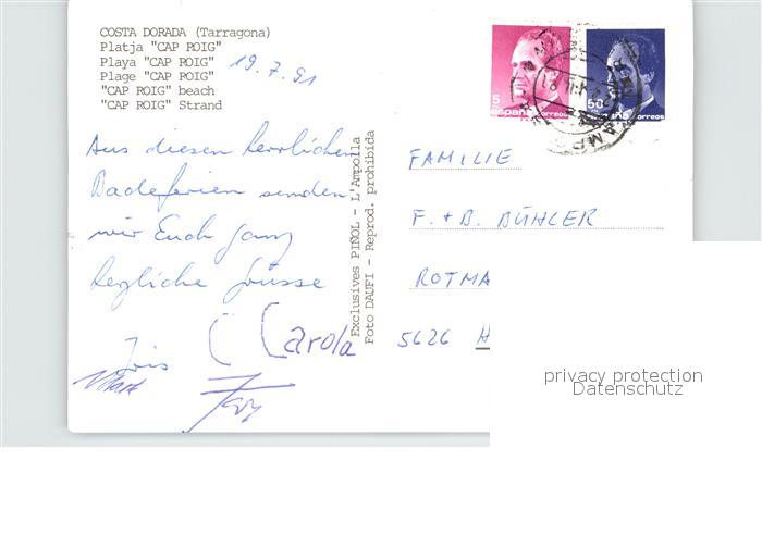 old postcard Tarragona Playa Cap Roig Costa Dorada Strand postalisch gelaufen Erhaltung siehe scans [FriedD77]