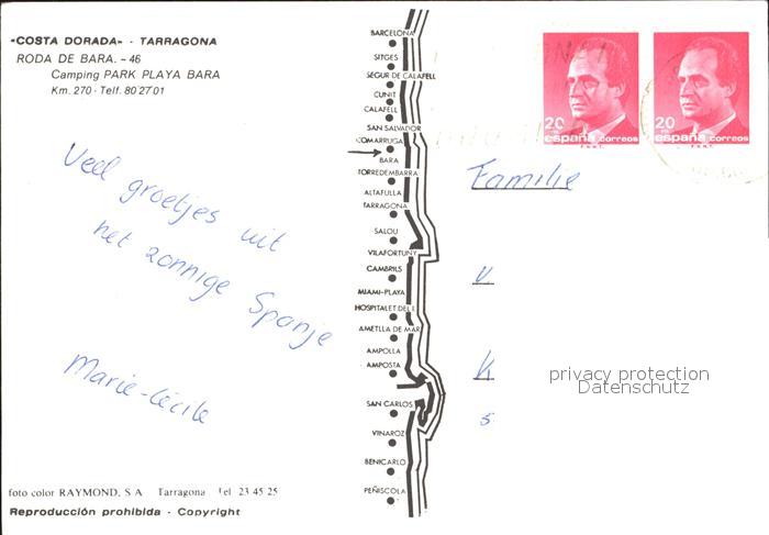 old postcard Tarragona Roda de Bara Camping Park Playa Bara postalisch gelaufen Erhaltung siehe scans