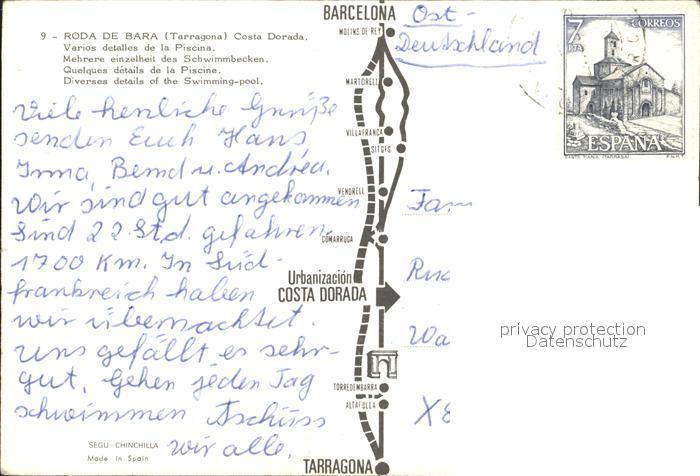 old postcard Tarragona Roda de Bara Schwimmbecken postalisch gelaufen Erhaltung siehe scans