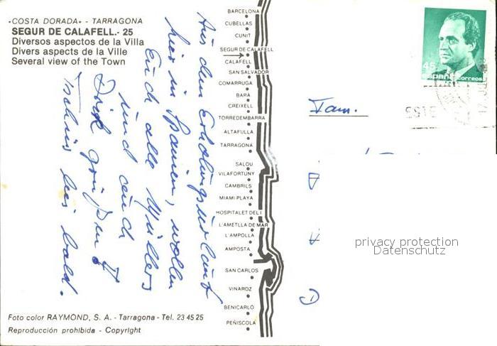 old postcard Tarragona Segur Calafell Stadtansicht Strand Luftbild postalisch gelaufen Erhaltung siehe scans
