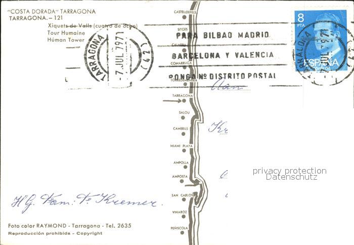 old postcard Tarragona Tour Humaine postalisch gelaufen Erhaltung siehe scans