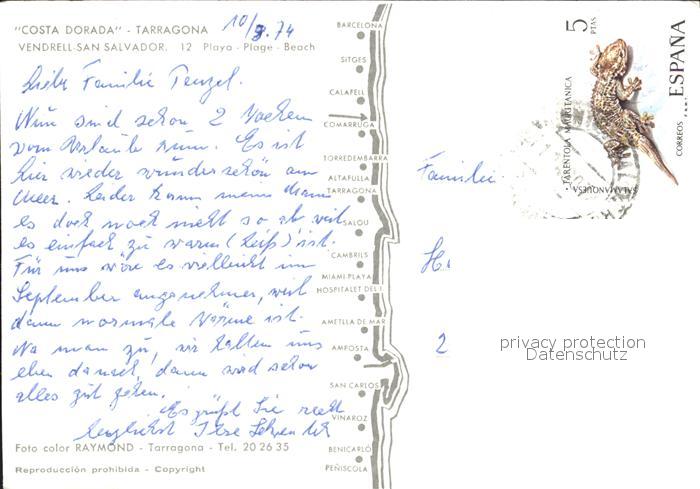 old postcard Tarragona Vendrell San Salvador Playa Hotel vista aerea postalisch gelaufen Erhaltung siehe scans