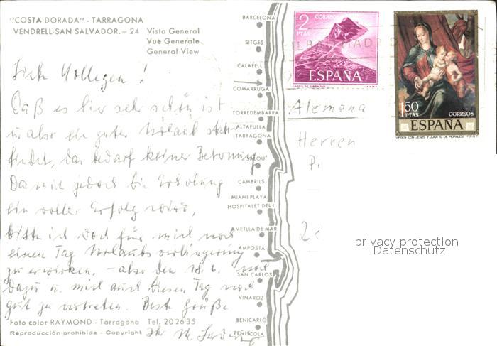 old postcard Tarragona Vendrell San Salvador Playa vista aerea postalisch gelaufen Erhaltung siehe scans