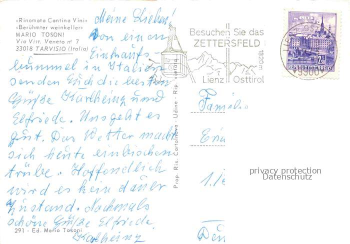 74109692 old postcard Tarvisio 751m Udine IT Cantina Tosoni Weinkeller Via Veneto Weinlese postalisch gelaufen Erhaltung siehe scans [WerneD78] KatCode: 11240