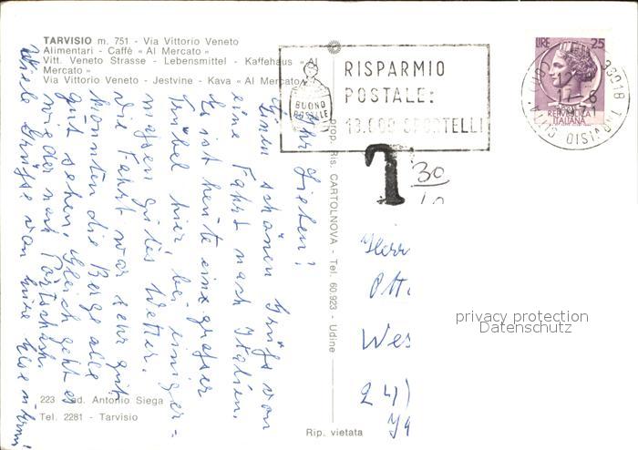 old postcard Tarvisio Via Vittorio Veneto postalisch gelaufen Erhaltung siehe scans