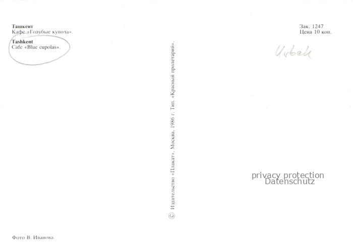 74095150 Taschkent Tachkent Usbekistan Cafe Blue cupolas postalisch nicht gelaufen Erhaltung siehe scans [WerneD78] KatCode: 12340