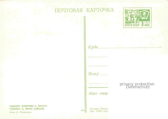 74042126 Taschkent Tachkent Usbekistan Denkmal K. Marks Hajkali postalisch nicht gelaufen Erhaltung siehe scans [IrynaD87] KatCode: 12340