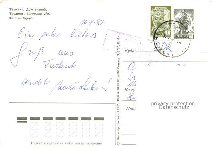 74040625 old postcard Taschkent Tachkent Usbekistan Haus des Wissens postalisch gelaufen Erhaltung siehe scans [IrynaD87] KatCode: 12340