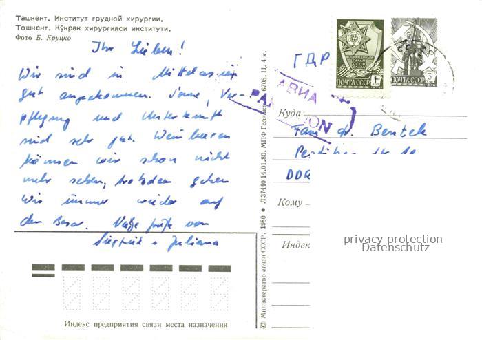 74040640 old postcard Taschkent Tachkent Usbekistan Institut Brust Chirurgie postalisch gelaufen Erhaltung siehe scans [IrynaD87] KatCode: 12340