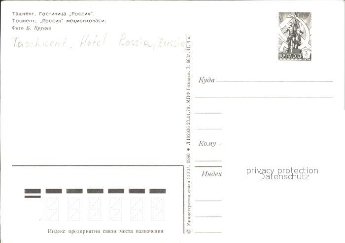 Taschkent Usbekistan Hotel Rossia postalisch nicht gelaufen Erhaltung siehe scans