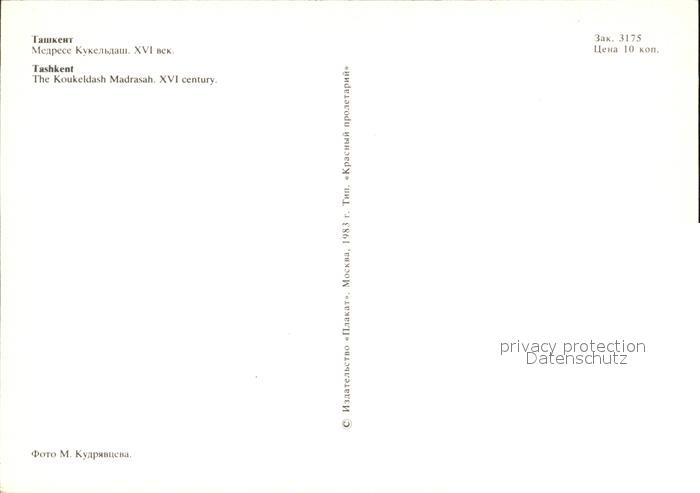 Taschkent Usbekistan The Koukeldash Madrasah postalisch nicht gelaufen Erhaltung siehe scans