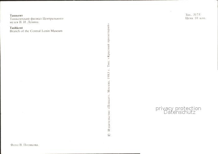 Tashkent Branch of the Central Lenin Museum postalisch nicht gelaufen Erhaltung siehe scans
