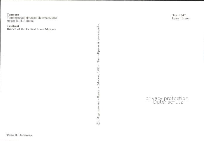 Tashkent Branch of the Central Lenin Museum postalisch nicht gelaufen Erhaltung siehe scans