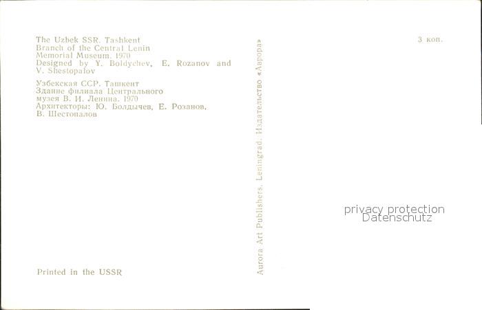 Tashkent Central Lenin Memorial Museum postalisch nicht gelaufen Erhaltung siehe scans