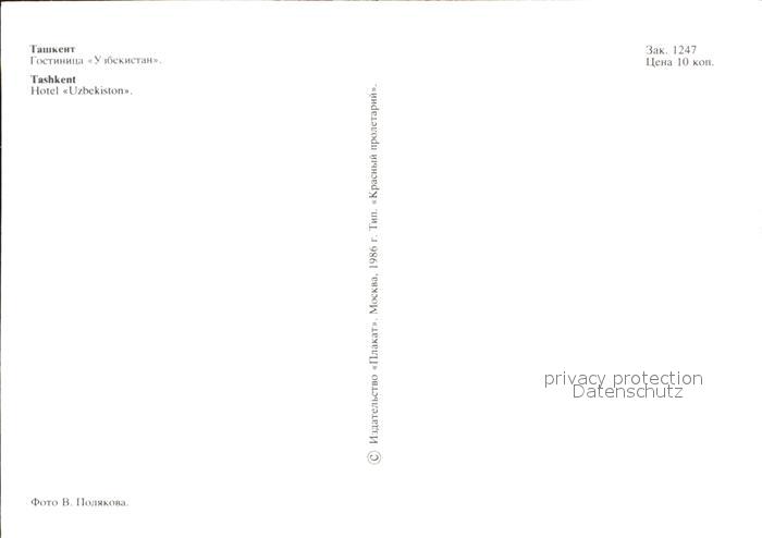 Tashkent Hotel Uzbekiston postalisch nicht gelaufen Erhaltung siehe scans
