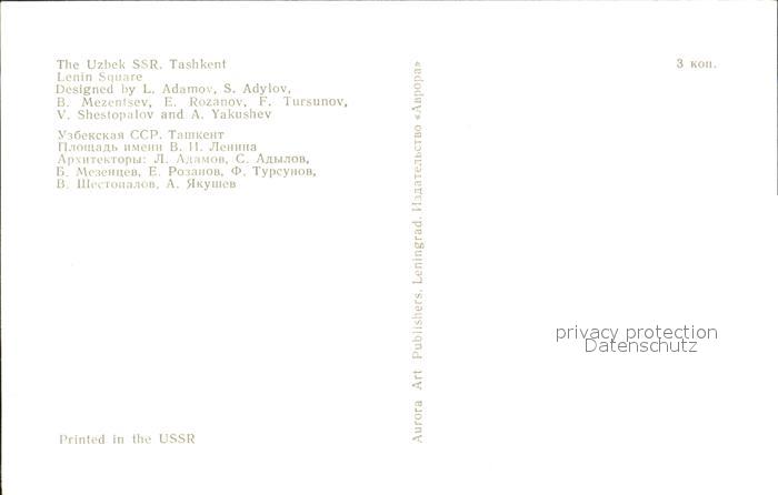 Tashkent Lenin Square Brunnen postalisch nicht gelaufen Erhaltung siehe scans