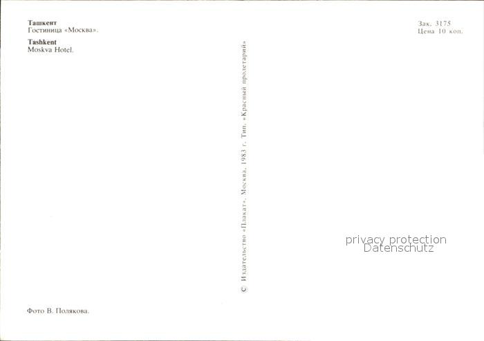 Tashkent Moskva Hotel postalisch nicht gelaufen Erhaltung siehe scans