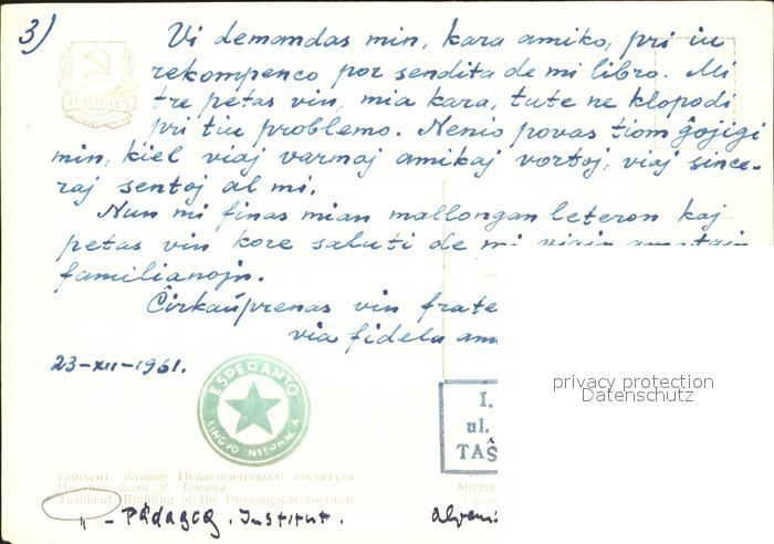 Tashkent Paedagogisches Institut postalisch nicht gelaufen Erhaltung siehe scans