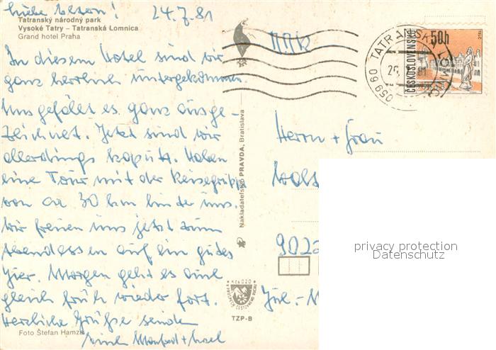 old postcard Tatranska Lomnica Grand Hotel Praha postalisch gelaufen Erhaltung siehe scans [LiesaD40]