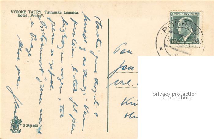 13618631 old postcard Tatranska Lomnica Hotel Praha postalisch gelaufen Erhaltung siehe scans [WerneD78] KatCode: 11520