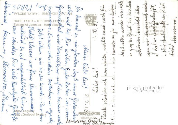 Tatranska Lomnica Hotel Slovan Hohe Tatra postalisch nicht gelaufen Erhaltung siehe scans