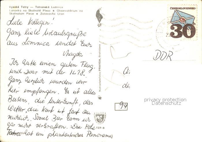 old postcard Tatranska Lomnica Seilbahn Observatorium postalisch gelaufen Erhaltung siehe scans
