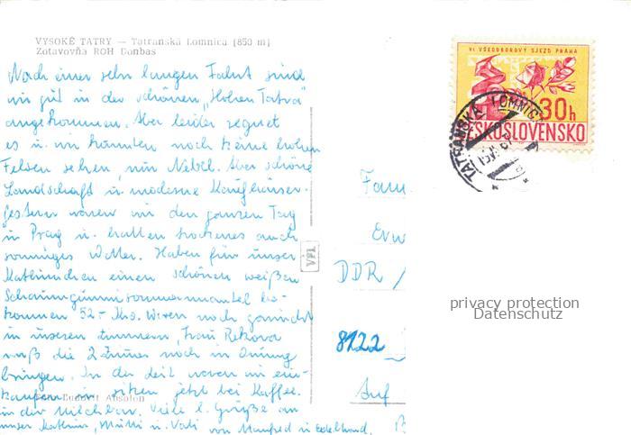 74042565 old postcard Tatranska Lomnica SK Zotavovna ROH Donbas Hotel postalisch gelaufen Erhaltung siehe scans [FriedD77] KatCode: 11490