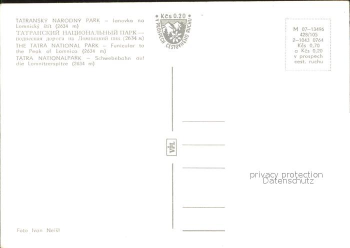 Tatransky Narodny Park Schwebebahn auf die Lomnitzerspitze Nationalpark postalisch nicht gelaufen Erhaltung siehe scans