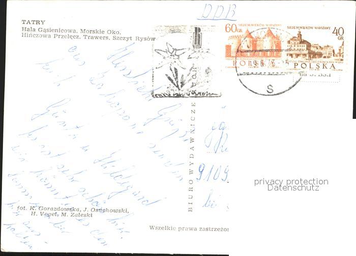 old postcard Tatry Vysoke Gebirge Gipfel und Bergsee postalisch gelaufen Erhaltung siehe scans