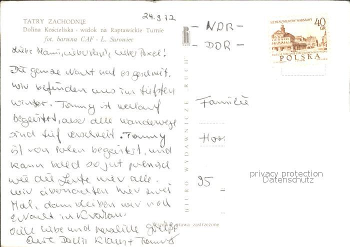 old postcard Tatry Vysoke Gebirge Zachodnje Dolina Koscieliska Raptawickie Turnie postalisch gelaufen Erhaltung siehe scans
