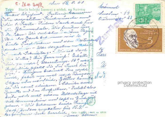 74132584 old postcard Tatry Vysoke Wysokie SK Stacja kolejki linou e z widok na Swinice Bergbahn Panorama Tatragebirge postalisch gelaufen Erhaltung siehe scans [FriedD77] KatCode: 11490