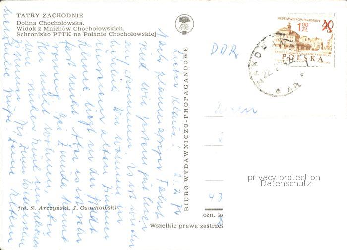 old postcard Tatry Zachodnie Dolina Chocholowska Mnichow Chocholowskich postalisch gelaufen Erhaltung siehe scans