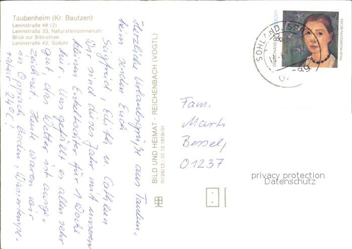 72590604 alte Postkarte Taubenheim Meissen Leninstr Natursteinsonnenuhr Bibliothek Sueduhr postalisch gelaufen Erhaltung siehe scans [WerneD78] KatCode: 11110014280400