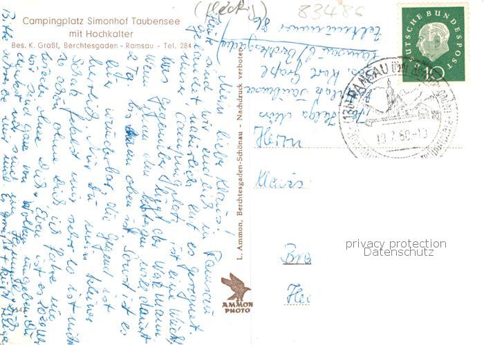 73853696 Taubensee Daubensee 1139m Chiemgau Campingplatz Simonhof mit Hochkalter postalisch gelaufen Erhaltung siehe scans [WerneD78] alte Postkarte Wern Katcode 11110009189141