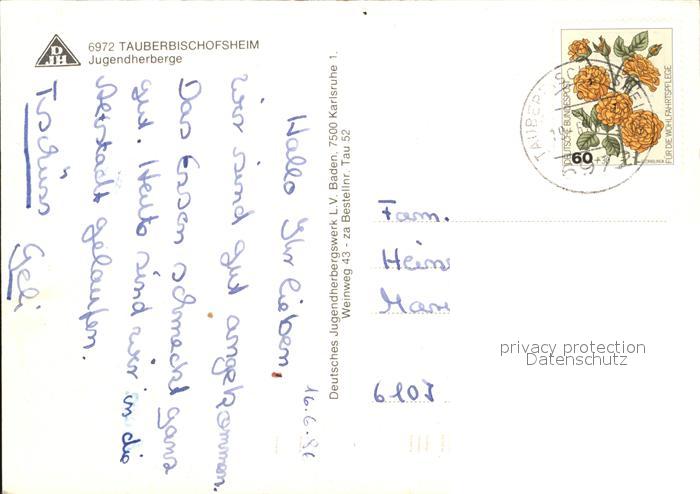 alte Postkarte Tauberbischofsheim Jugendherberge postalisch gelaufen Erhaltung siehe scans