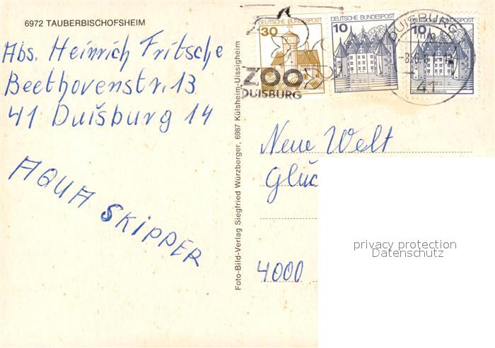 73083421 alte Postkarte Tauberbischofsheim Kirche Schloss postalisch gelaufen Erhaltung siehe scans [KathaD81] KatCode: 11110008128115