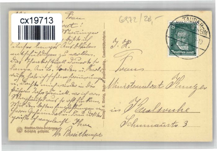 30725679 alte Postkarte Tauberbischofsheim Schloss postalisch gelaufen KatCode: 11110008128115