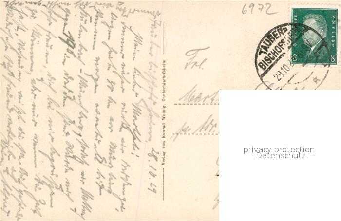43368944 alte Postkarte Tauberbischofsheim Stadtbild mit Kirche postalisch gelaufen Erhaltung siehe scans [FriedD77] KatCode: 11110008128115