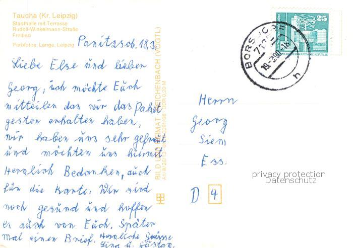 73866002 alte Postkarte Taucha Sachsen Stadthaus Terrasse Rudolf Winkelmann Strasse Freibad postalisch gelaufen Erhaltung siehe scans [WerneD78] KatCode: 11110014374345