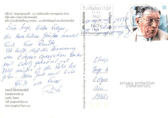 73647565 alte Postkarte Tauer Hotel Christinenhof Spreewald Ostdt Rosengarten Forst Naherholung Grossee Pferdekoppel am Christinenhof postalisch gelaufen Erhaltung siehe scans [WerneD78] KatCode: 11110012071384
