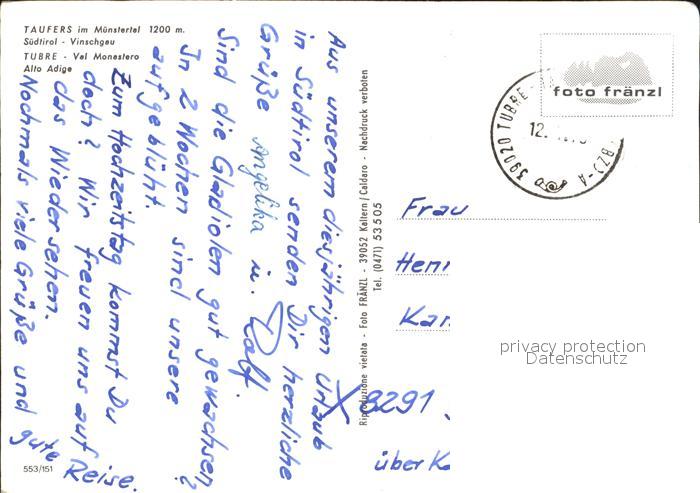 old postcard Taufers Tubre im Muenstertal postalisch gelaufen Erhaltung siehe scans