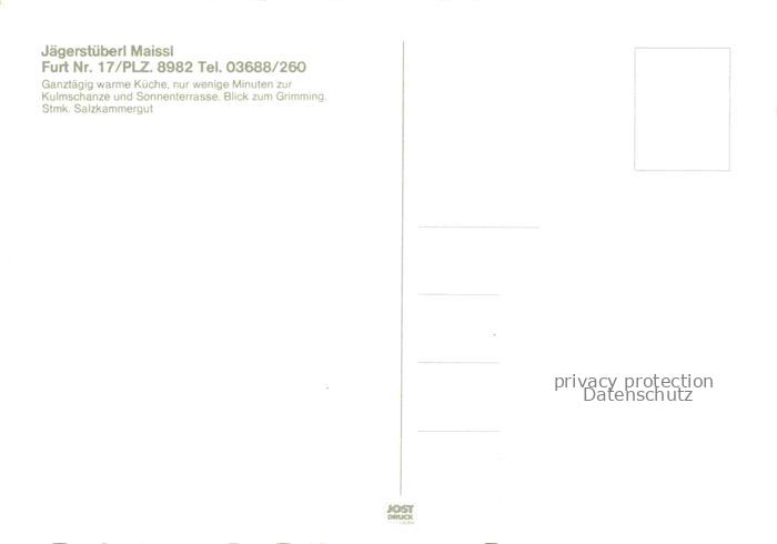 74132346 Tauplitz Liezen Steiermark AT Jaegerstueberl H. Maissl Gastraum Terrasse postalisch nicht gelaufen Erhaltung siehe scans [FriedD77] KatCode: 11390222061245